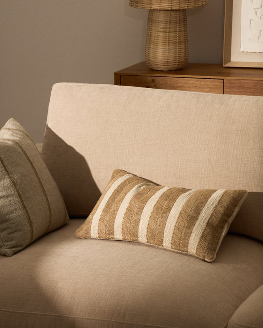 Refresh your textiles with the Zailo collection, made of cotton with jute embroidery. The perfect combination of comfort and authenticity to add a cosy touch to your rooms.