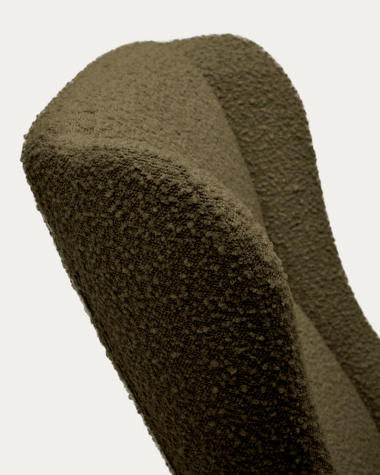 Maustin rocking chair in green bouclé with a dark green steel structure and beech wood