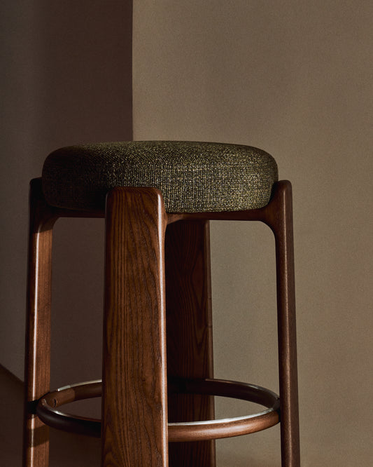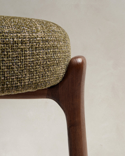 Granite stool in green chenille and solid ash wood with walnut-coloured finish FSC 100% 65cm