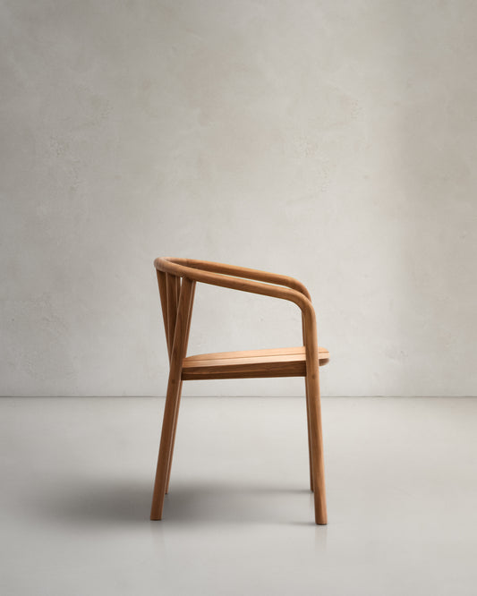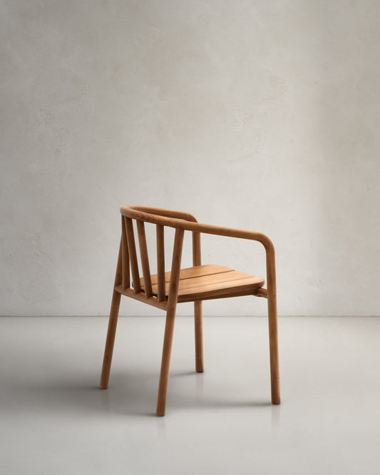 • 견고한 티크나무로 제작된 스태킹이 가능한 아웃도어 원목 암체어.
