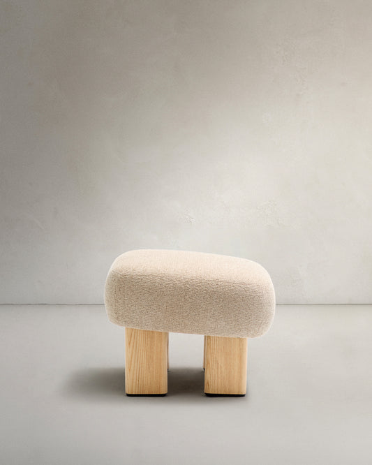 카바나 베이지 셔닐 FSC 100% 네츄럴 애쉬나무 풋레스트 65x55.4 cm