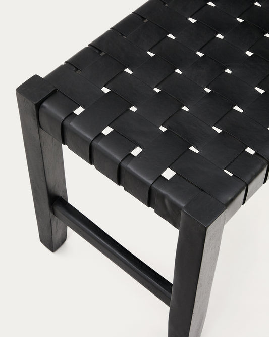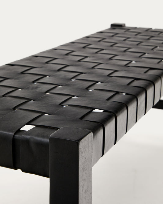 - 가죽 시트와 견고한 블랙 마호가니 프레임의 벤치.
