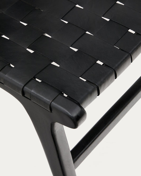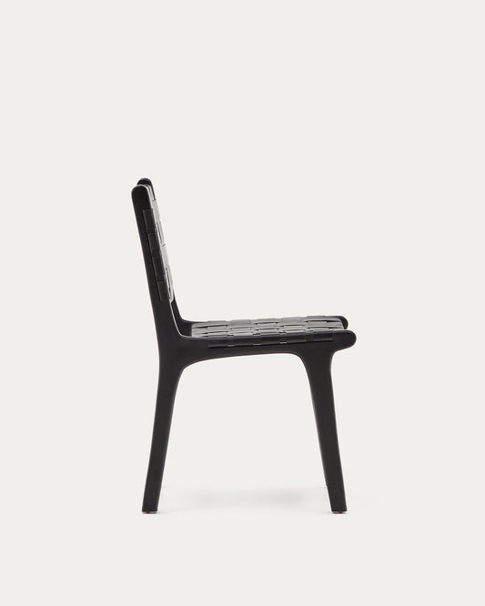 - 블랙 가죽의 등받이와 시트, 견고한 마호가니 나무 프레임의 다이닝 체어.