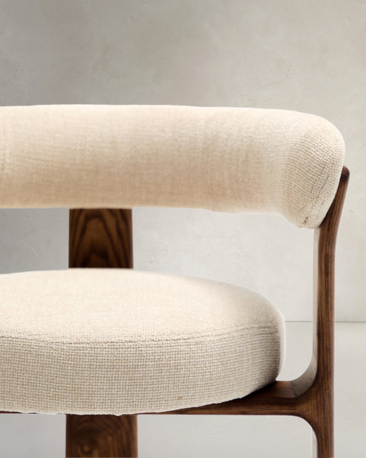 - 2가지 톤의 베이지 셔닐과 재활용 폴리에스터로 제작된 두꺼운 원단의 체어.