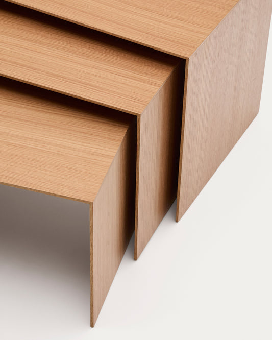 - 오크 베니어로 제작된 네스팅 테이블 3개 세트입니다.