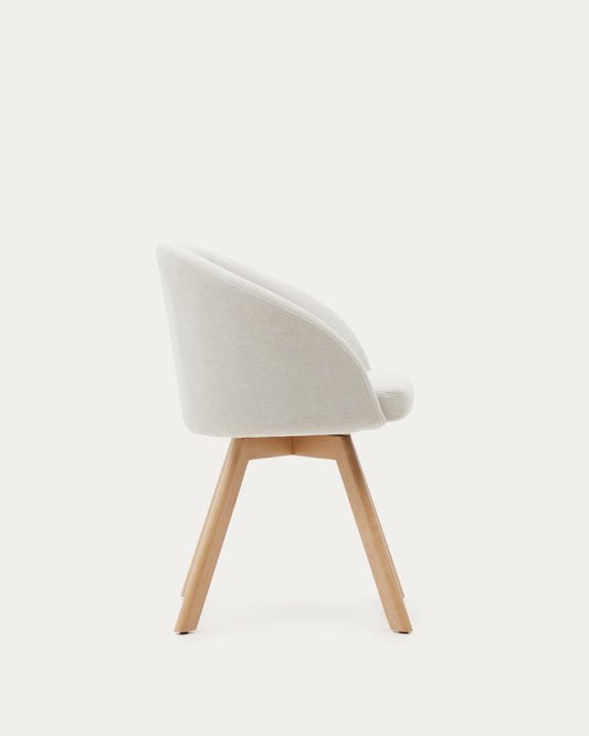 마빈 베이지 샤닐 패브릭 원목 회전 다이닝 체어