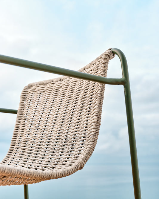 - 자외선 차단 기능의 물결무늬 로프 코드를 핸드메이드로 짜서 만든 등받이와 좌방석.