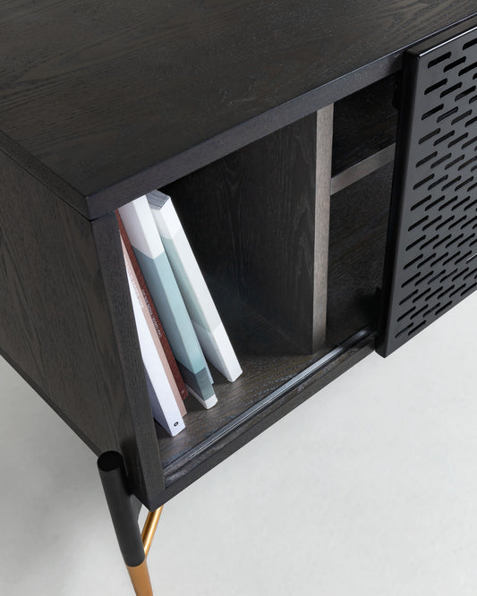 노포트 에쉬나무 스틸프레임 블랙 TV거실장 140cm