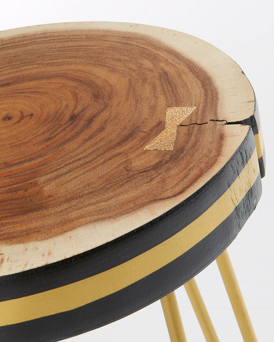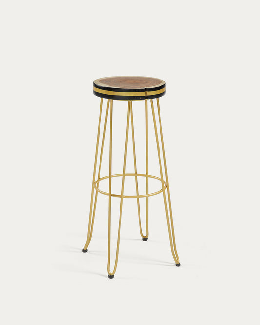 파이 뭉그루나무 원목 스틸 바스툴(골드650)