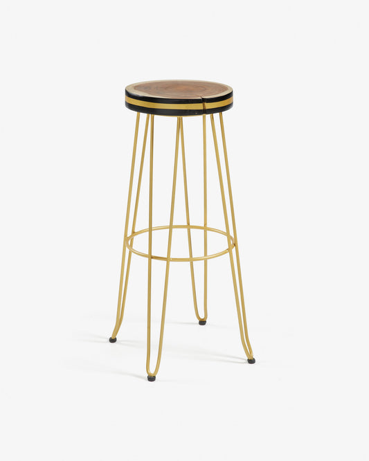 파이 뭉그루나무 원목 스틸 바스툴(골드730)