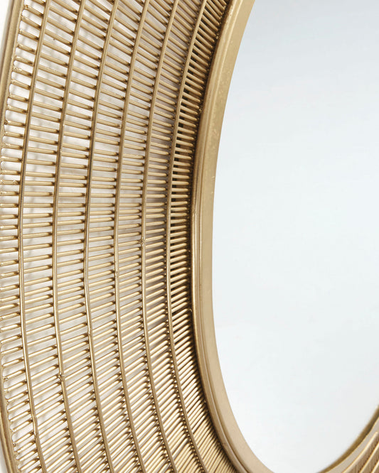 - Round mirror with a diameter of Ø80 cm with a frame made of steel rods painted with a gold coloured finish.