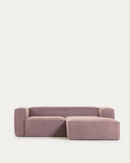 블럭 스페인 직수입 코듀로이 3인소파(핑크 우측카우치형) 240cm