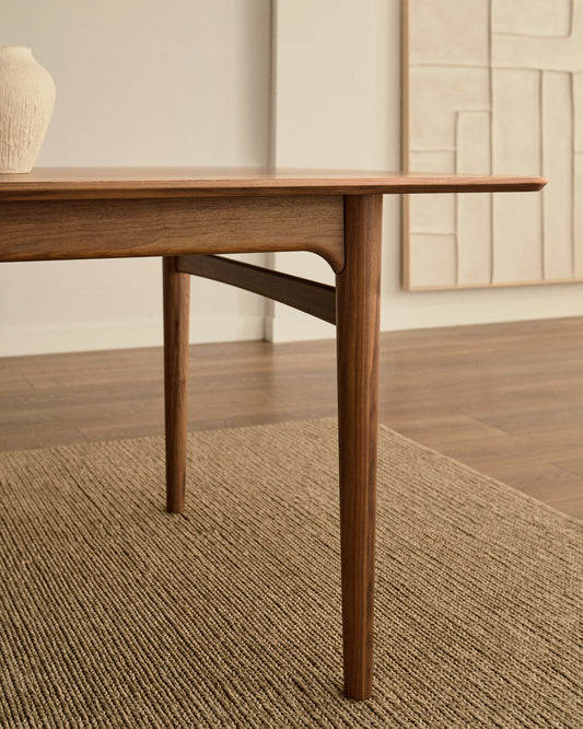 - 월넛 베니어의 상판과 네츄럴 마감의 월넛 원목 다리의 확장 가능한 테이블.