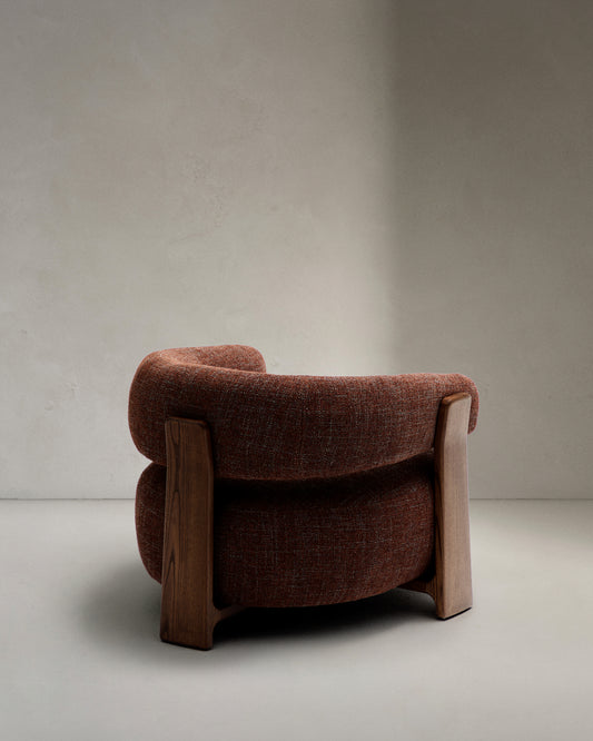 - 2가지 톤의 브라운 셔닐과 재활용 폴리에스터로 제작된 두꺼운 원단의 암체어.