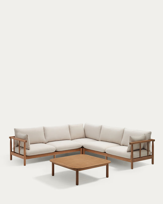 사코바 FSC 인증 유칼립투스 목재 아웃도어 5인 코너형 소파&테이블세트