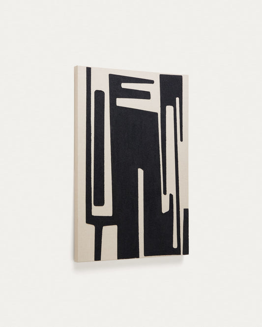 살미 베이지&블랙 린넨 추상화 패인팅 그림 벽장식 100 x 70 cm