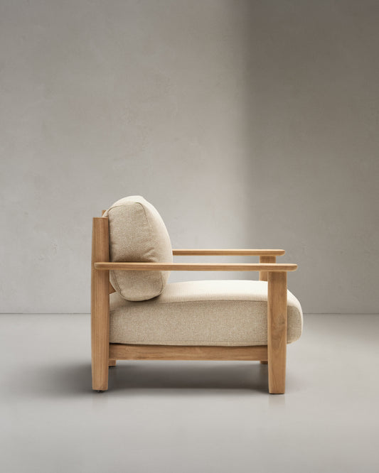 - 책임감 있는 숲 관리를 인증하는 100% FSC 인증 티크나무를 사용한 암체어.