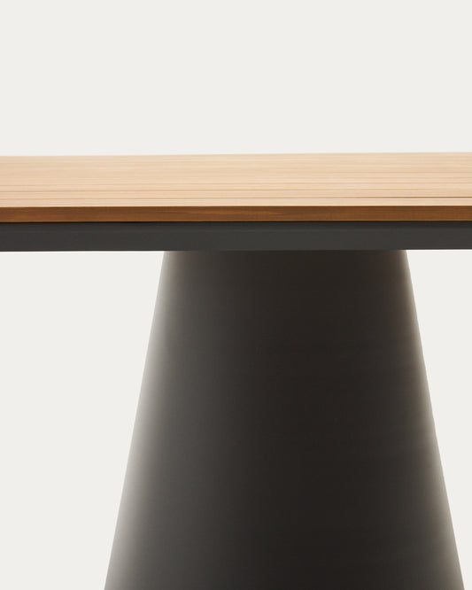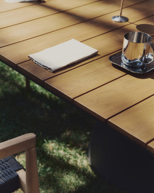 - 알루미늄 베이스와 티크나무 상판의 사각 아웃도어 테이블.