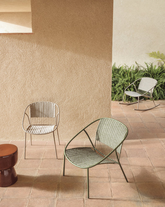 The Atrani armchair combines lightness and resistance in a design created to enjoy movement in peace and quiet. Its seat and backrest, hand-woven with UV-resistant rope cord, offer comfort and durability even outdoors. The structure, made of galvanised steel, provides stability and high resistance to rust and corrosion, ensuring a longer life than ordinary steel. In addition, its stackable design allows space to be optimised when not in use.