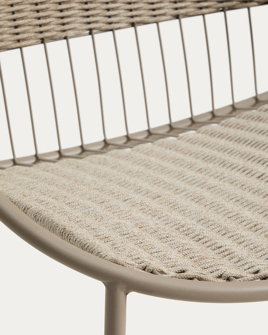 Stackable Atrani armchair in galvanized steel and taupe rope