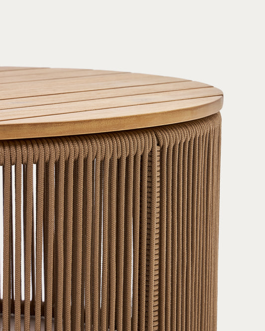 Dandara coffee table made of steel, beige cord and solid acacia wood, Ø70 cm FSC 100%
