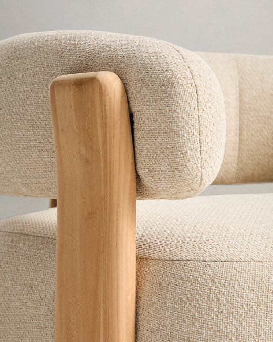 Granite outdoor armchair in beige with legs in FSC 100% solid teak wood in a natural finish