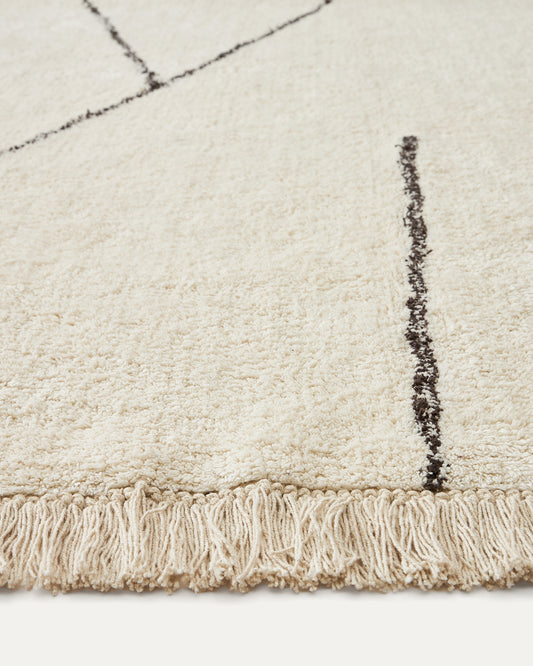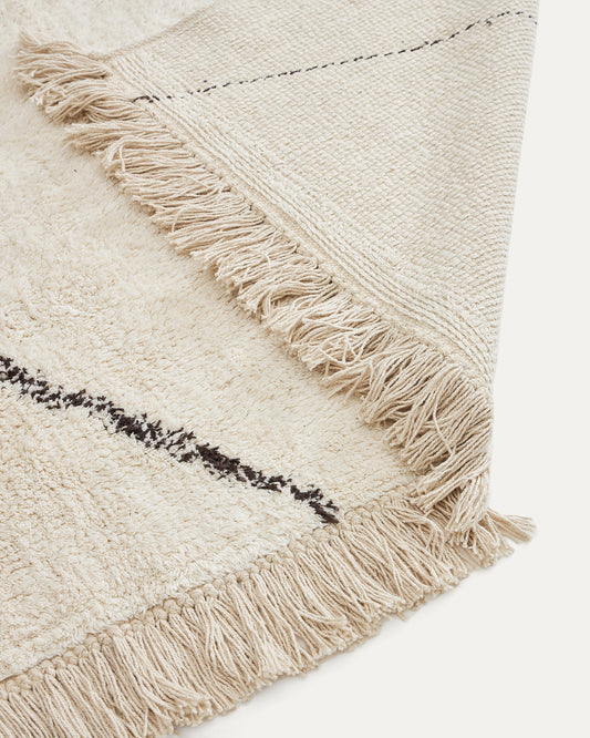 - Designed with a fur effect, contrasting geometric design and fringes.