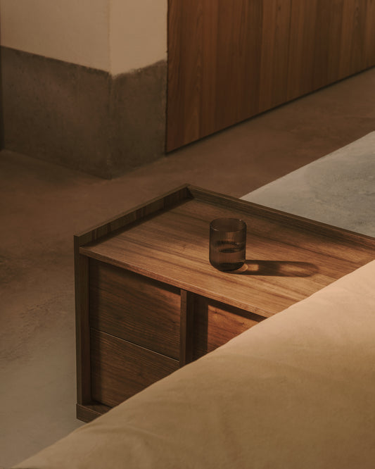 Onix bedside table, 2 drawers, walnut veneer in a dark finish, 60 x 47 cm FSC Mix Credit