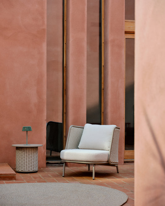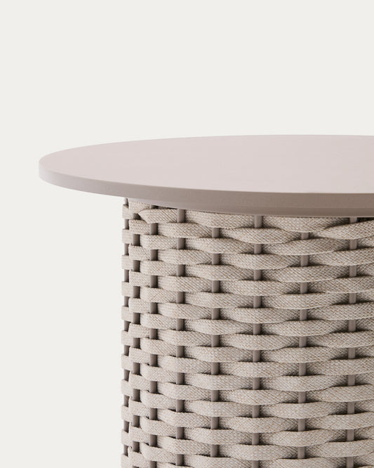 Sedalis outdoor side table in aluminium and taupe rope cord Ø50cm