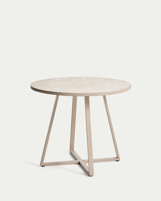 Tella round table in galvanised steel with beige tiles Ø90cm